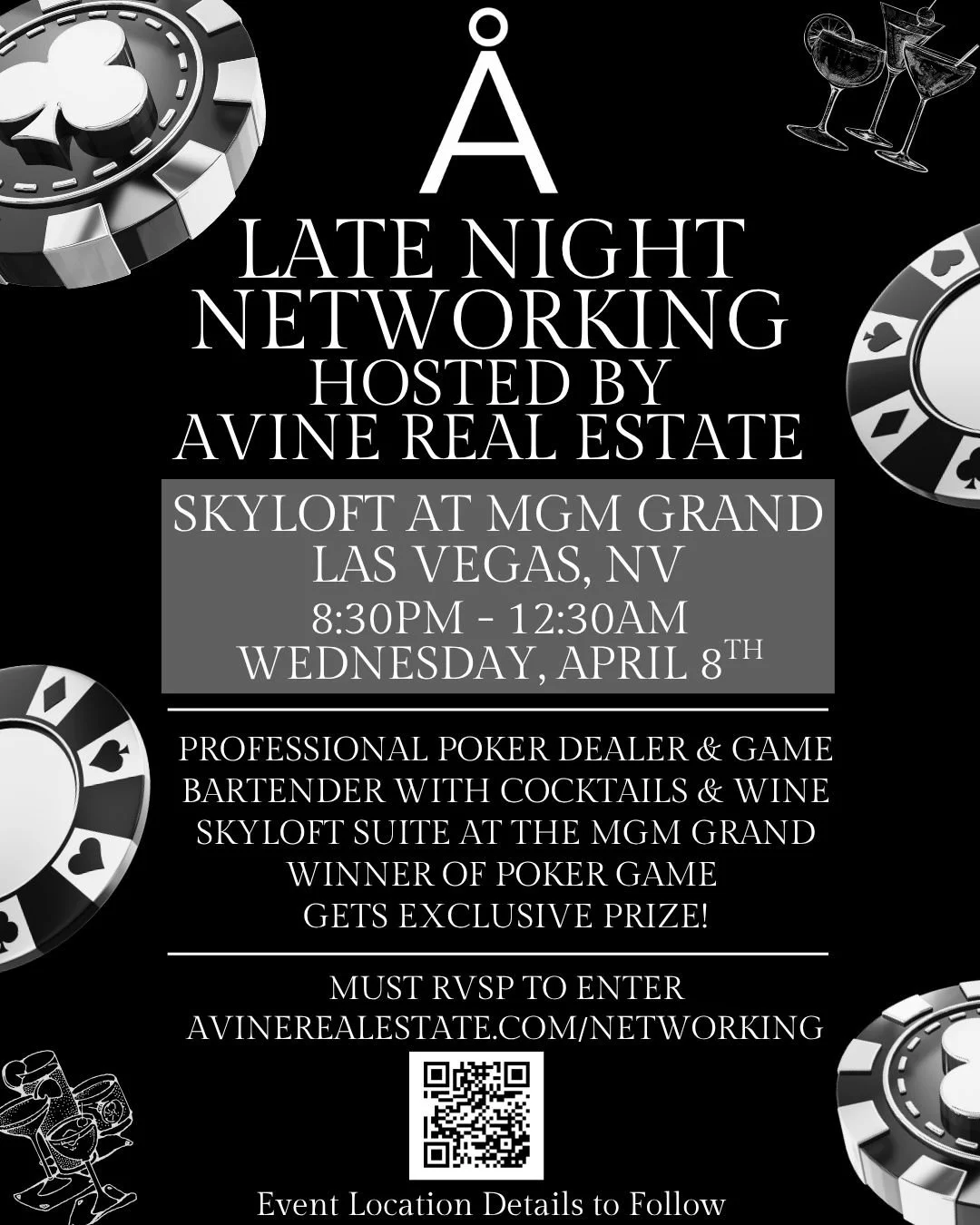 We look forward to seeing you at the Late Night Networking with Avine Real Estate, Wednesday April 8th, Skylofts at the MGM Grand!